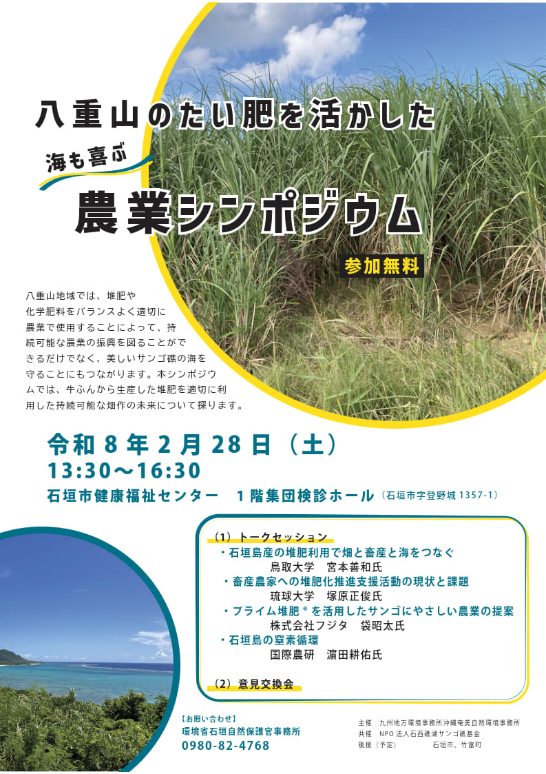 - 「八重山のたい肥を活かした海も喜ぶ農業シンポジウム」開催のお知らせ